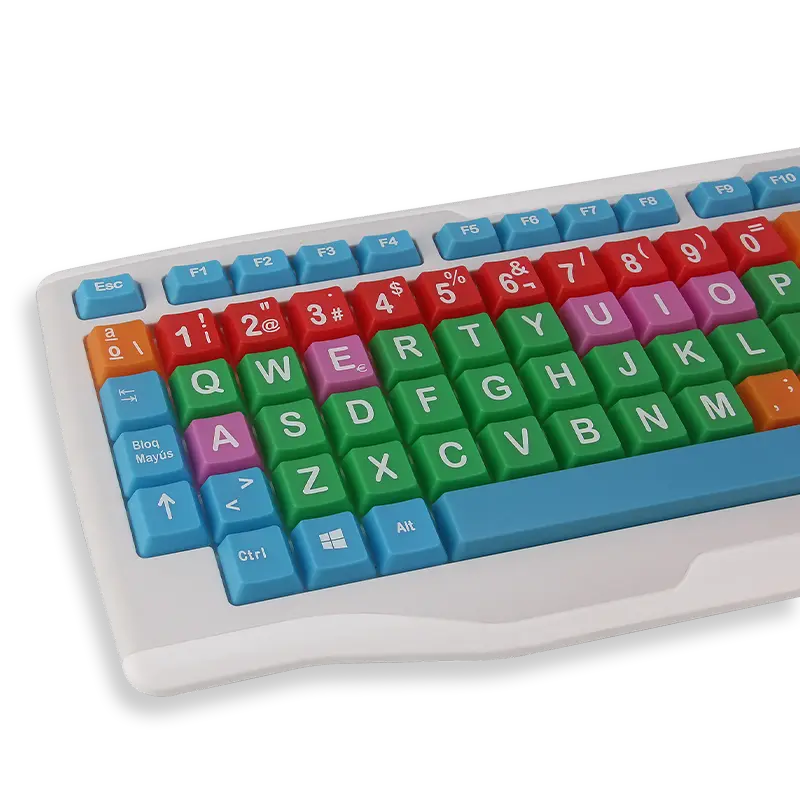 Le clavier filaire pour enfants K800 USB, spécialement conçu pour les enfants, adopte une conception à double couche de surface mate en plastique ABS, des matériaux respectueux de l'environnement, une correspondance des couleurs raisonnable et inodore est propice à la vision et à la pensée des enfants, offrant aux enfants une enfance heureuse, anti-chute et usure- résistant. Avec un design ergonomique et un design à gros boutons, c'est un bon ami pour les enfants. L'interface USB est plug and play, ce qui améliore considérablement le temps d'utilisation du clavier.