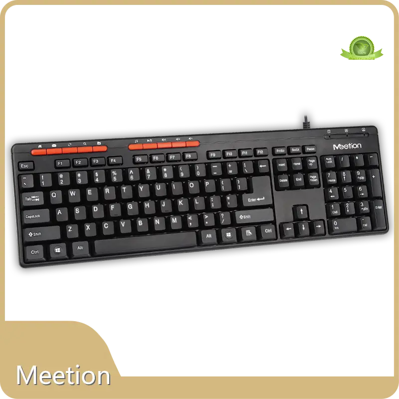Le clavier filaire MEETION-1 est un clavier filaire standard USB conçu avec une disposition ergonomique et des caractères imprimés UV. Il convient à une utilisation en bureau professionnel et dispose de touches multimédia pour améliorer l'efficacité opérationnelle.